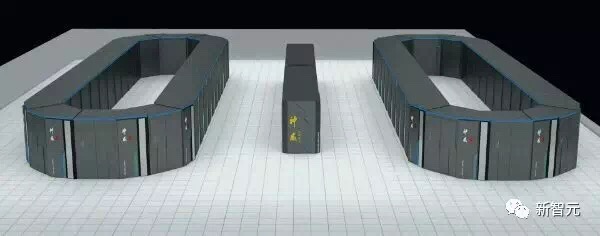 從整體上看,“神威·太湖之光”在機(jī)房中的排列呈“010”的樣式,這也正是計(jì)算機(jī)的語言。國家超算無錫中心的工作人員向新智元介紹說,“神威·太湖之光”總共有48個(gè)機(jī)柜,左右兩邊各20個(gè),中間 8個(gè)。其中,每一個(gè)機(jī)柜有 1024個(gè)CPU,采用眾核架構(gòu),每個(gè)CPU有四個(gè)主核,每個(gè)主核帶有64個(gè)從核。主核負(fù)責(zé)分發(fā)任務(wù),從核負(fù)責(zé)加速,“等于把CPU和GPU做在一起了”。